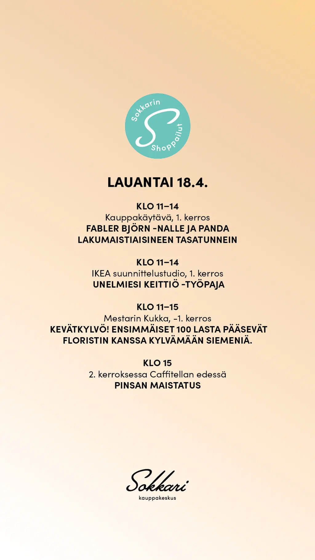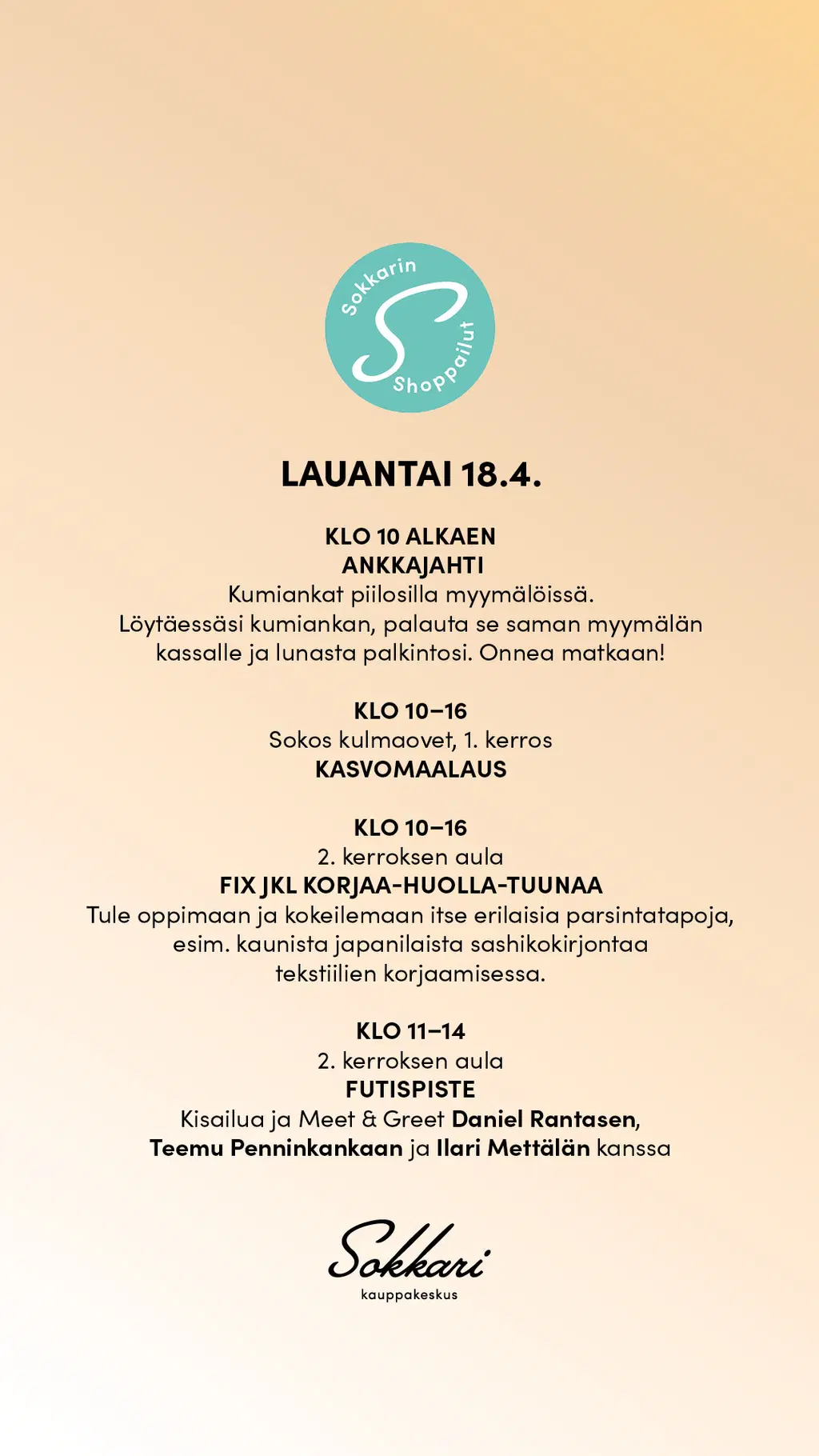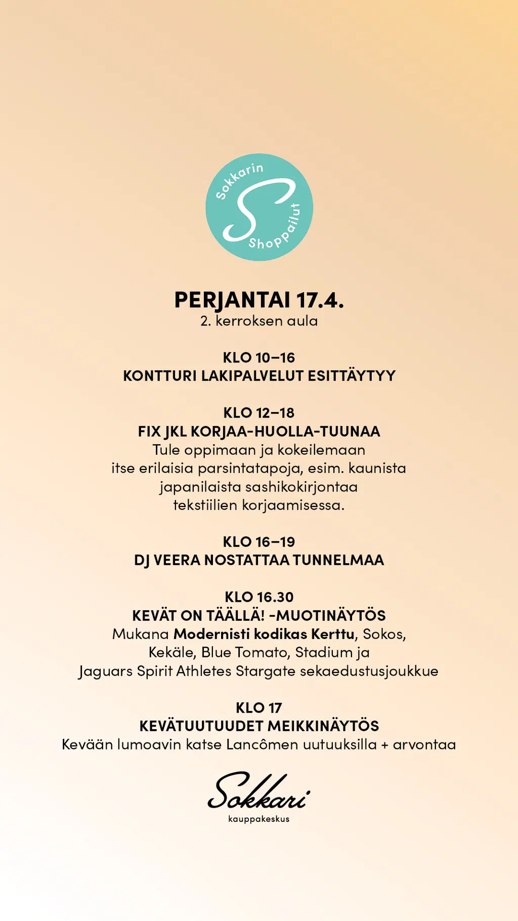 Sokkarin Shoppailuilla otetaan ilo irti keskustan parhaista palveluista, mahtavista eduista ja ohjelmasta sekä inspiroidutaan uutuuksista torstaista sunnuntaihin!